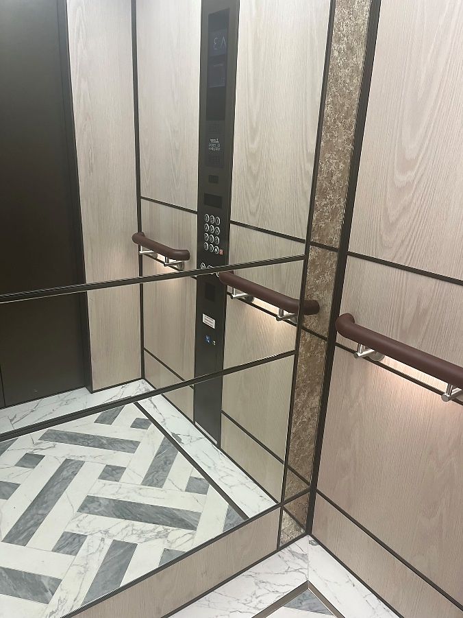 In keeping with the luxury and sophistication of One Nine Elms, Mitsubishi Electric has integrated advanced features into the elevators, including the Destination Oriented Allocation System (DOAS) and a state-of-the-art touch-panel destination control hall operating panel. These features, typically found in office buildings, offer an elevated user experience by efficiently managing elevator traffic and providing intuitive controls.